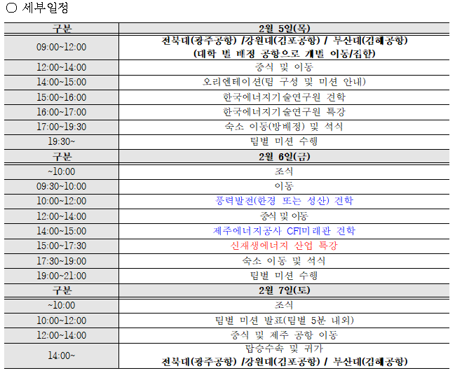 ○ 프로그램명 : 2025 첨단분야 혁신융합대학 E-SynC! 동계 에너지 제주 캠프